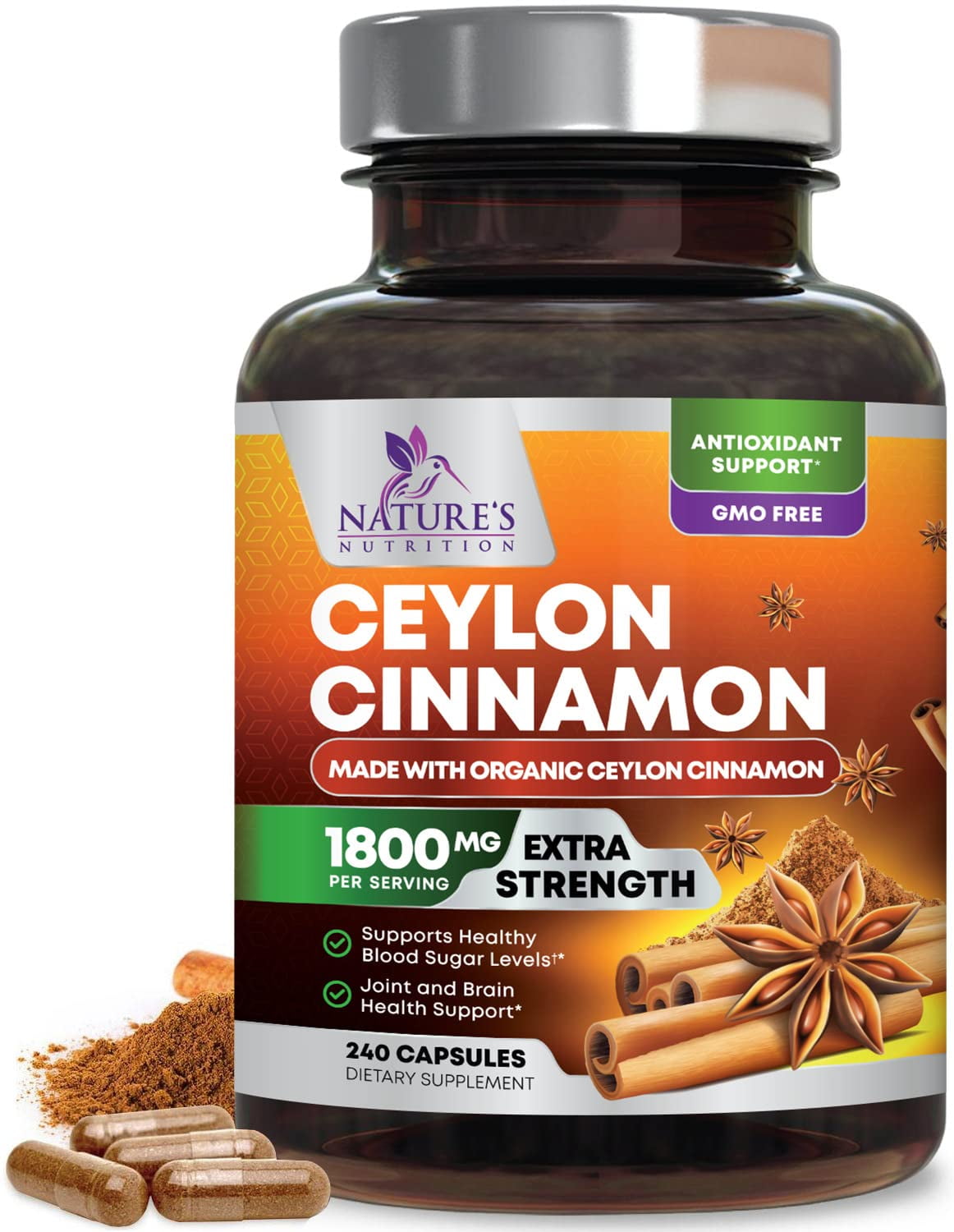 Organic Ceylon Cinnamon Capsules By Nature S Nutrition 1800mg Natural Blood Sugar Support Certified Organic Sri Lanka Ceylon Cinnamon True Cinnamon Cinnamomum Verum Vitamins 120 Capsules Walmart Com